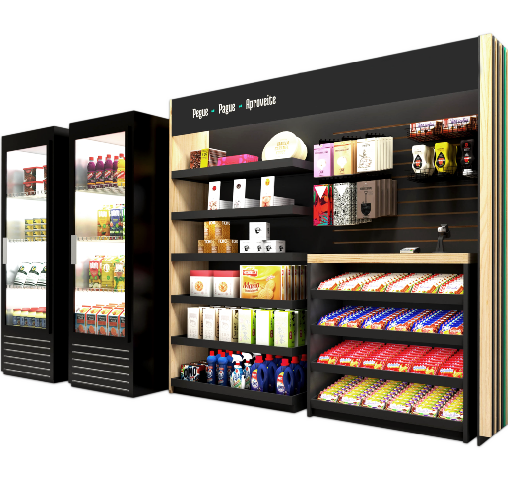 Realizamos a instalação do micromercado, operando no formato de autoatendimento (self service), de forma prática e eficiente.